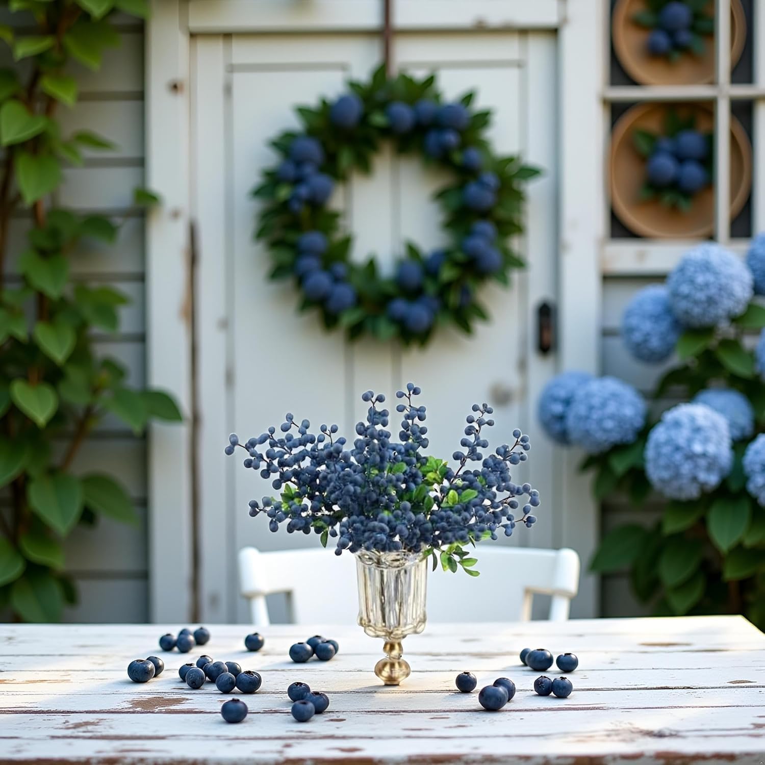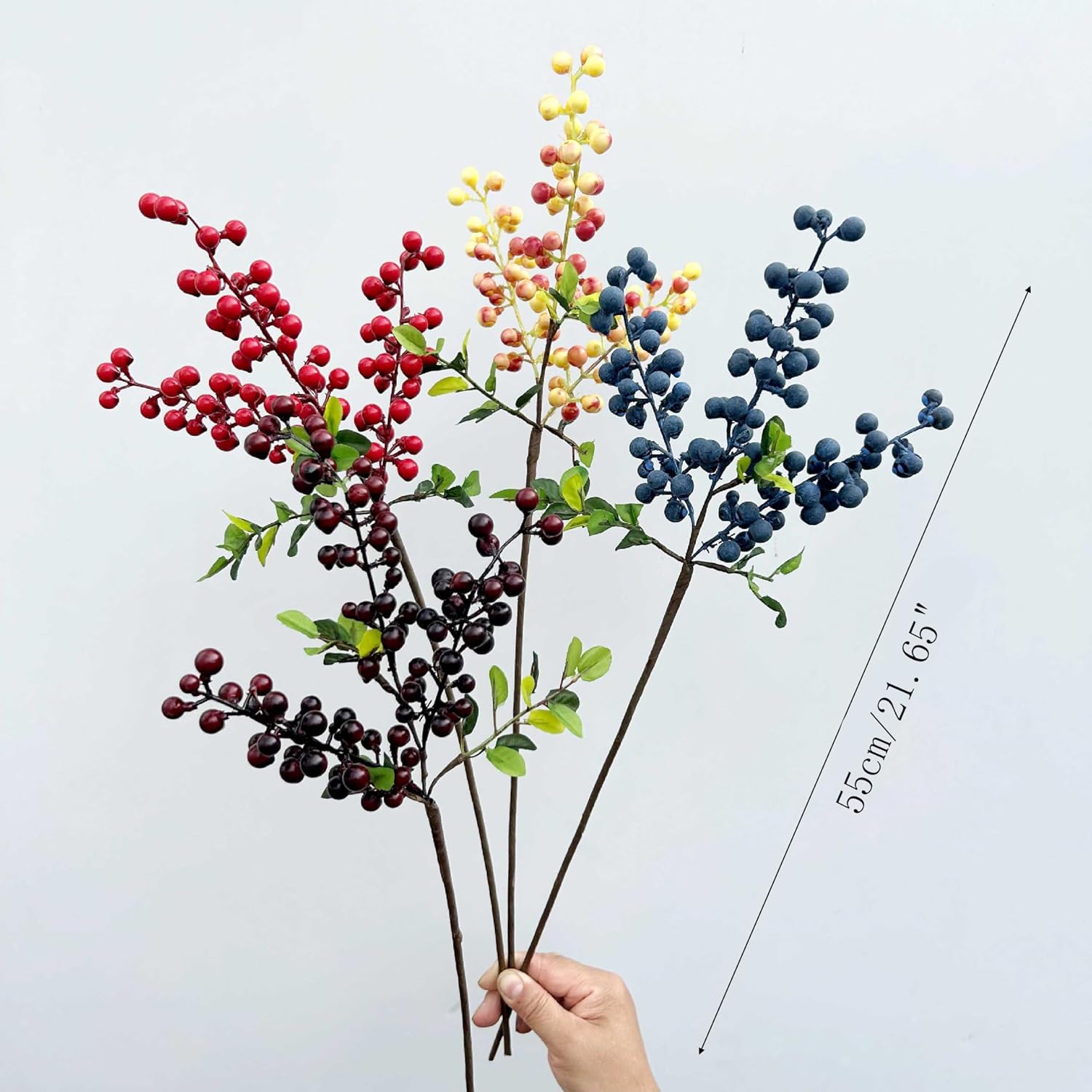 8 Pack Natural Artificial Holly Blueberry Wire Stems for Christmas Tree Decorations Wreath Craft Use Wedding Party Favor Home Bathroom Table Vase Filler