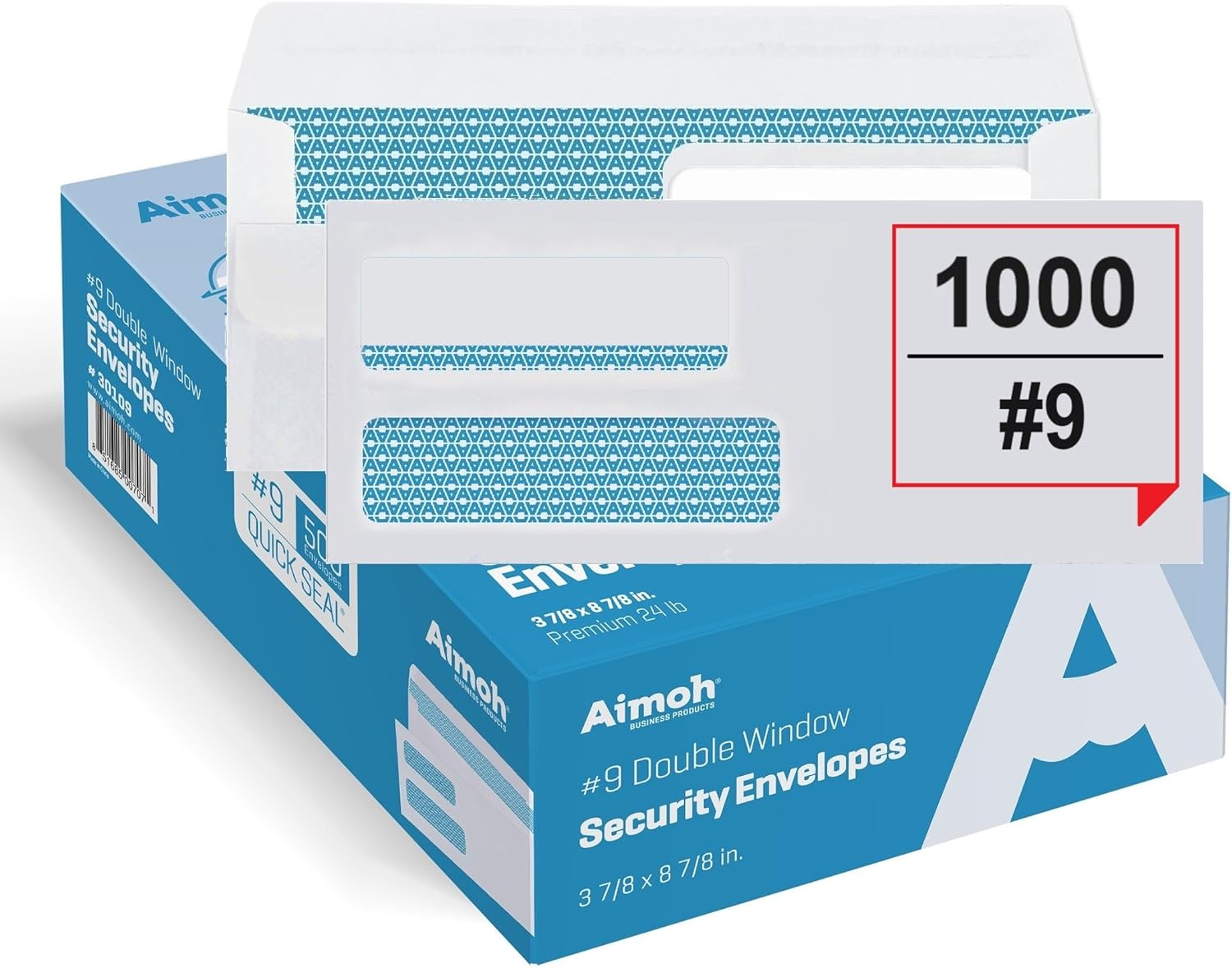 500#9 Double Window SELF Seal Security Envelopes - for Invoices, Statements & Documents, Security Tinted - Size 3-7/8 x 8-7/8-24 LB - 1000 Count (30139)