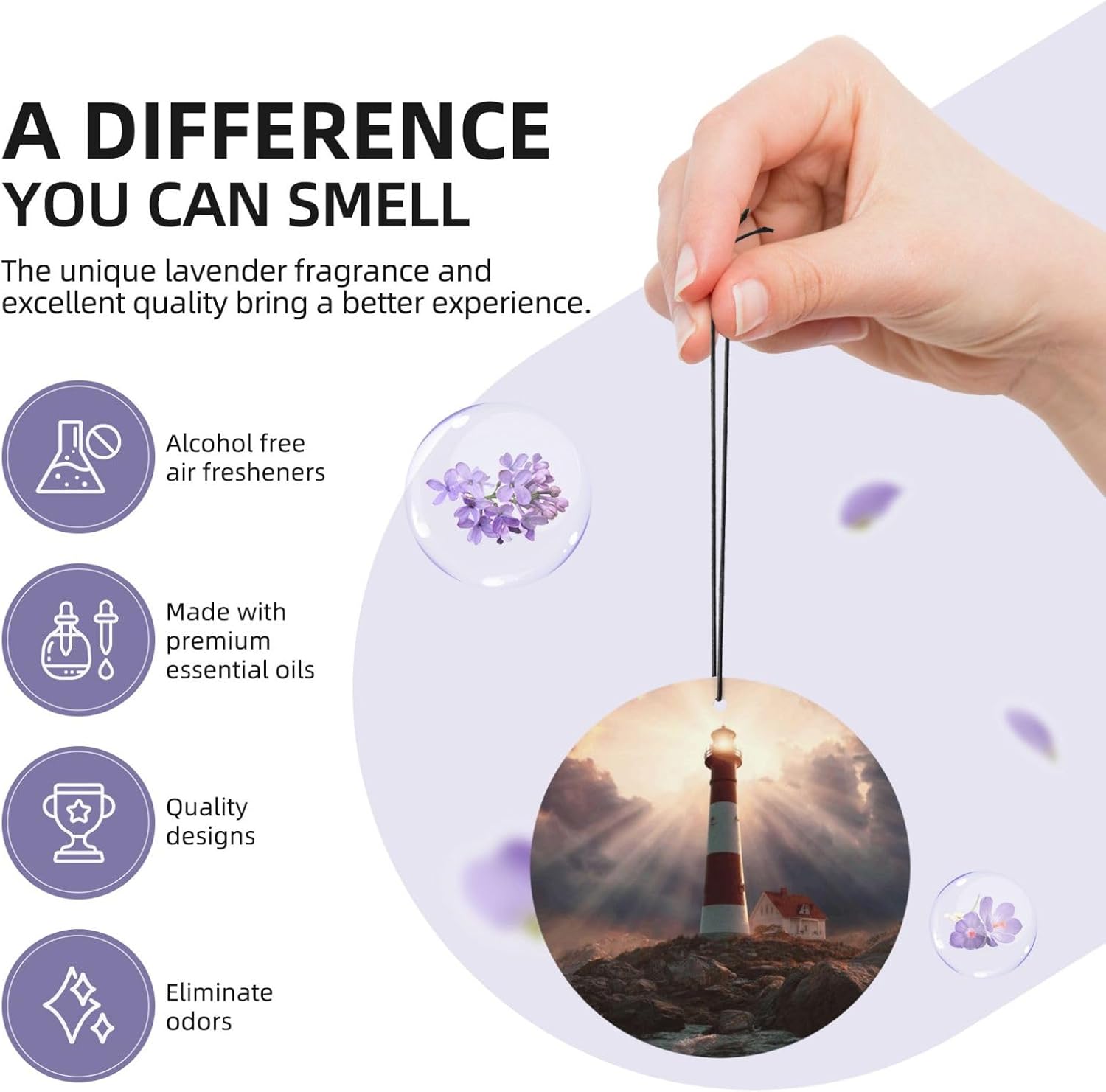 unobstructed vision: this Lighthouse rearview mirror scented fresheners doesn't obstruct your vision while driving, ensuring a safe and comfortable journey every time.easy hang: we've included a convenient rope for hanging, making it super easy to attach this christmas air freshener wherever you prefer. No fuss, no mess - just hang and enjoy the fragrance.incredible package deal: this rearview mirror pendant aromatherapy tablets package includes 6 pieces in 6 captivating designs and 1 refreshing scents (lavender). Experience a variety of delightful fragrances that will keep your surroundings smelling wonderful throughout the day.environmental protection: the car air fresheners for women smell can last for about 1-2 weeks. When the smell fades, you can add your favorite perfume. Continue to use, reusable6 pcs included: you will receive 5 individual shoe cabinet fresheners, each in its own package; enjoy consistent scents for nearly a year, or share them with your friends or families
