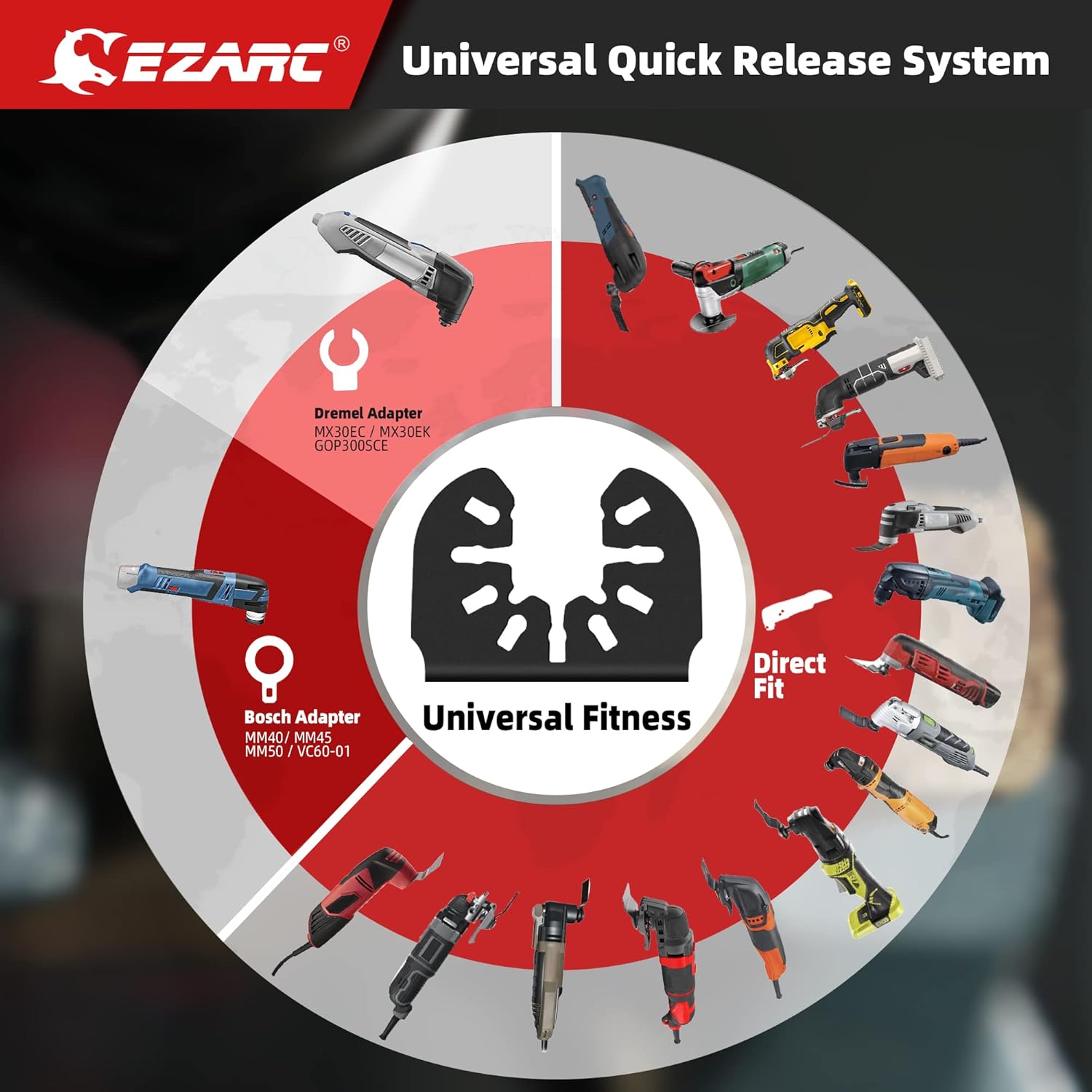 Product Description The OBSIDIAN CARBIDE Oscillating Tool Blade is engineered for high-performance, tackling the toughest materials with ease. TiCN Coating Tech: Featuring advanced Titanium Carbo-Nitride (TiCN) coating, the carbide teeth reach an impressive hardness of 92 HRA. This technology delivers razor-sharp edges, ultra-fast cuts, and up to 100x longer wear resistance compared to standard bi-metal blades. Extreme Metal Performance: Built with next-gen carbide and an optimized tooth design, this oscillating blade excels at cutting through hard metals like masonry nails, stainless steel, bolts, and galvanized pipes. It ensures unmatched durability and efficiency on the jobsite. Universal Compatibility: The EZARC multitool blades feature a universal interface compatible with most leading oscillating tool brands, including Fein, Ryobi, Milwaukee, and more (not Starlock compatible). Versatile Applications: Perfect for cutting steel, stainless steel, non-ferrous metals, wood with nails, drywall, and plastic pipes, this multitool blade offers exceptional cutting life and reliability across various applications. Upgrade your toolkit with the EZARC Japanese Tooth Oscillating Saw Blades, a set of 10 Extra-Long Arc Edge Oscillating Multitool Blades designed for clean cuts on wood and plastic. The pack includes 5 pcs of 1-1/2" and 5 pcs of 2-11/16" blades, each outfitted with CR-V Japanese teeth, making them the perfect oscillating tool blades for both soft wood and plastic. The extra-long blades are engineered to optimize performance in confined or hard-to-reach areas. The unique 'Curved-Tec Design' of the oscillating saw blade ensures optimal cutting angles for increased efficiency and precision. This innovative design drastically reduces vibration and boosts stability during operation.