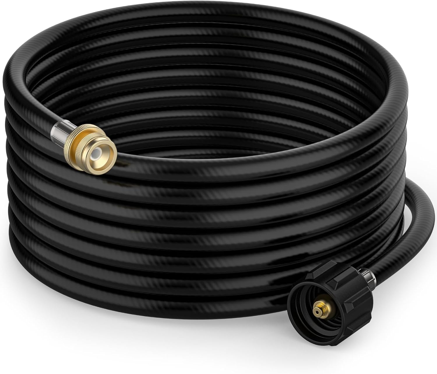 ONLYFIRE propane hose assembly adapts refillable LP tanks to lanterns, camping stoves, and tabletop grills. Great for camping, tailgating, heating needs or having an outdoor cookout. Whether you need to eat, power or grill, ONLYFIRE specializes in making propane tanks and cylinders used daily across the globe. ONLYFIRE propane hose assembly allows you to connect an appliance designed to use a 1lb disposable cylinder to a 20lb or 30lb refillable propane tank. Flexible Tank Adapter Hose. Has built-in excess flow and thermal protection. Attention: For your safety, please keep the hose away from high temperature.Note:The hose period of use:1 year.The customer must ensure the hose without any damage before use