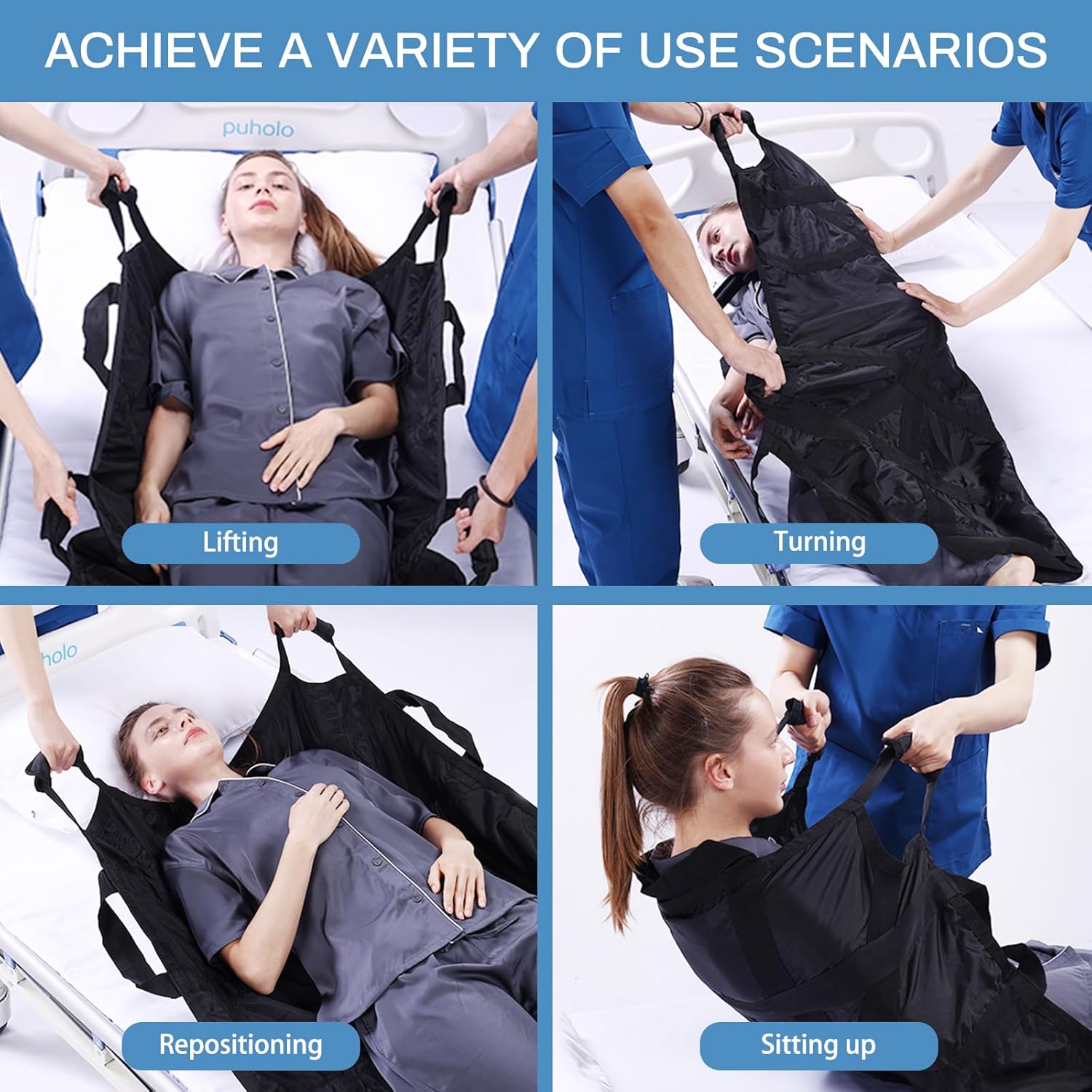 Puholo is committed to making it easier and more efficient for nurses, home care specialists and emergency medical technicians, and we design the perfect reusable nylon positioning bed pad. You don't have to worry about soaks anymore. 380 lb weight capacity is suitable for a variety of different sizes of patients.Transport board belt for medical transport,daily living and home care mobility devices. Positioning bed pad with handles for hemiplegic patient, hospitals, moving elderly, disabled patients, stroke patients, elderly, parkinsons, seniors, hemiplegic patient.