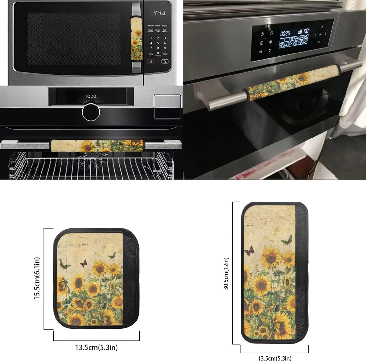 Refrigerator Handle Gloves Set Kitchen Appliance Protective Gloves Non-Slip Cover for Ovens Dishwashers Package Included Appliance handle gloves set of 8, 2 pairs of large fridge handle gloves, 1 pair of medium fridge handle gloves and 1 pair of microwave handle gloves. They are also suitable for small kitchen appliances such as dishwashers. Perfect Fiting Large Refrigerator handle gloves 16.1'L x 5.3'W. Medium Refrigerator handle gloves 12'L x 5.3'W. Microwave handle gloves 6.1'L x 5.3'W. It can fit different sizes of small appliances to better protect your refrigerator and microwave from grease and water stains. Ideal Gift Our this eight-piece fridge handle set has a very wide range of elements to choose from, which can be applied to different holiday scenes and daily scenes, such as Halloween, Thanksgiving, Christmas, etc., which makes it an ideal gift for your friends and family, beautiful and practical. Tips Please do not apply our products near the fire source. Data for manual measurement, there may be 1-2cm error The real thing may have a little deviation due to light or other objective reasons.