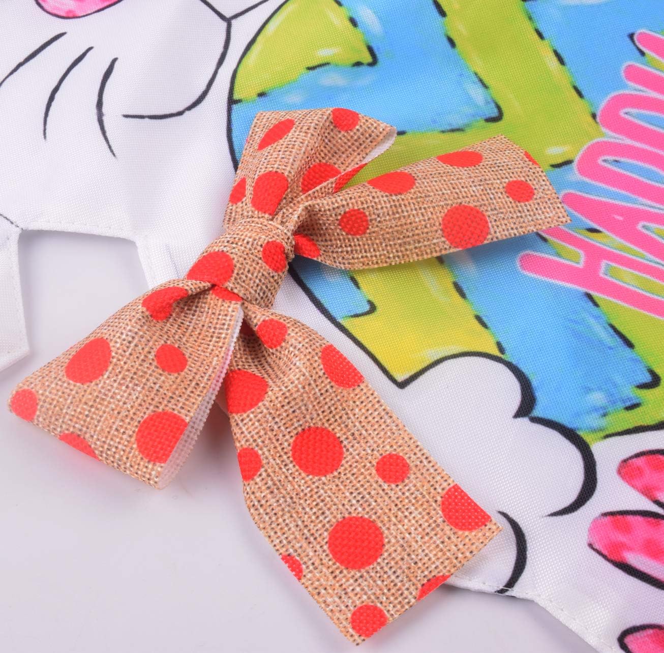 CELEBRATE EASTER:It is the funy way to welcome your friends and guests for the Easter holiday, this flag will be a charming addition to your home . DOUBLE SIDED: design is double sided with the image printed and visible from both sides and text also reads correctly from both sides. BIG SIZE BANNER :This House Flag is the large size (28 x 40")Proper size for displaying on the indoor or outdoor, such as garden,front yard, patio, porch or backyard. HIGH QUALITY: Made of durable,Durable Woven Weather Polyester,quick-drying.was printed a love white rabbit and colorful eggs. HOME DECOR: Super size Cute Easter Bunny Eggs Garden Flag .Suitable for thick stands or twigs.