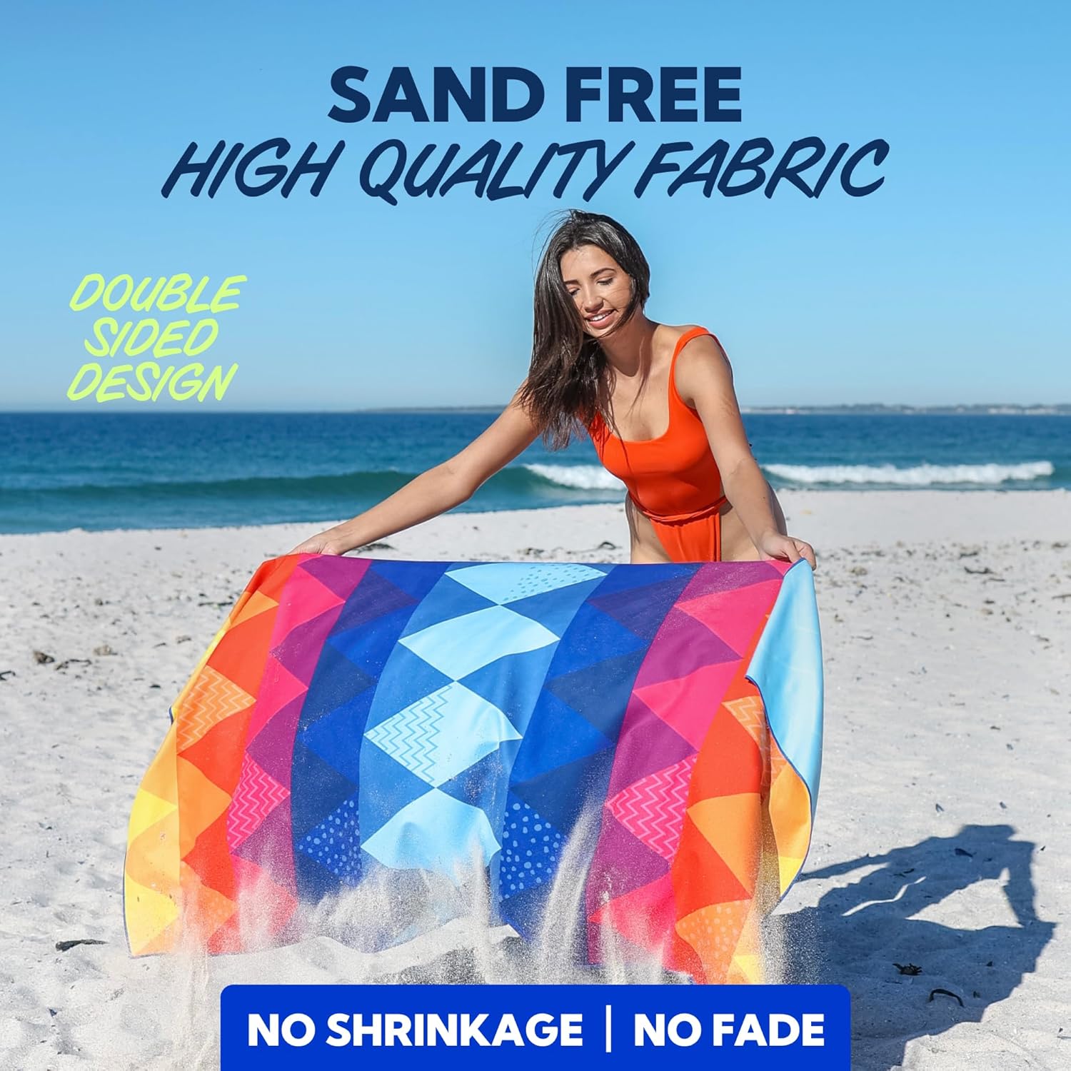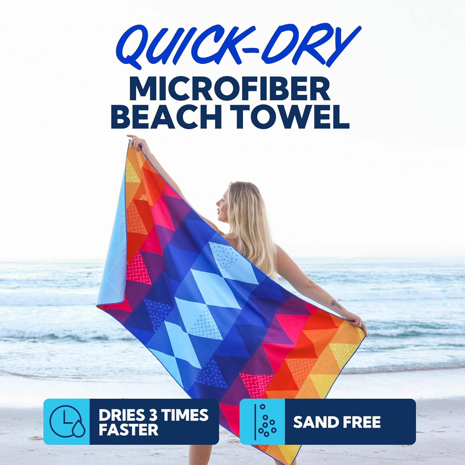 Introducing the Sun Ninja Quick Dry Microfiber Beach Towel. Crafted with meticulous attention to detail, this towel combines style, functionality, and superior quality to enhance your beach experience like never before. Made from high-quality microfiber material, our extra large microfiber beach towel is purpose-engineered to repel sand and boasts exceptional absorption capabilities. It absorbs water and dries 3 x faster than ordinary fabric, ensuring you stay dry & comfortable, while keeping you and your beach essentials clean. Our microfiber sand free beach towel is more than a beach essential. It's a versatile companion for all your outdoor activities. Take it with you on your travels, use it during yoga or meditation sessions, bring it along on camping trips, or enjoy it after a refreshing swim. Its practical size is suitable for both adults and kids, making it a perfect choice for the whole family. And when it's time for cleaning, simply toss it in the washing machine for a hassle-free wash.Product Info1x Beach Towel