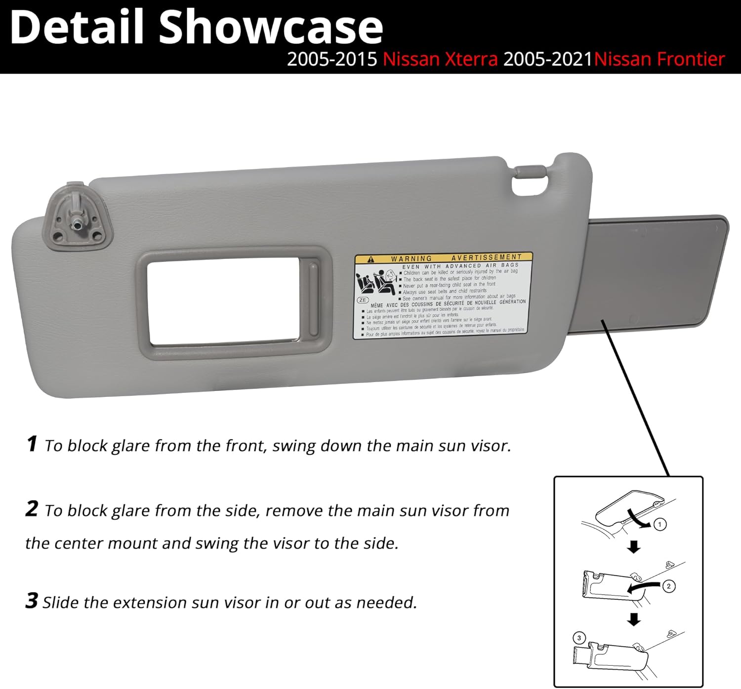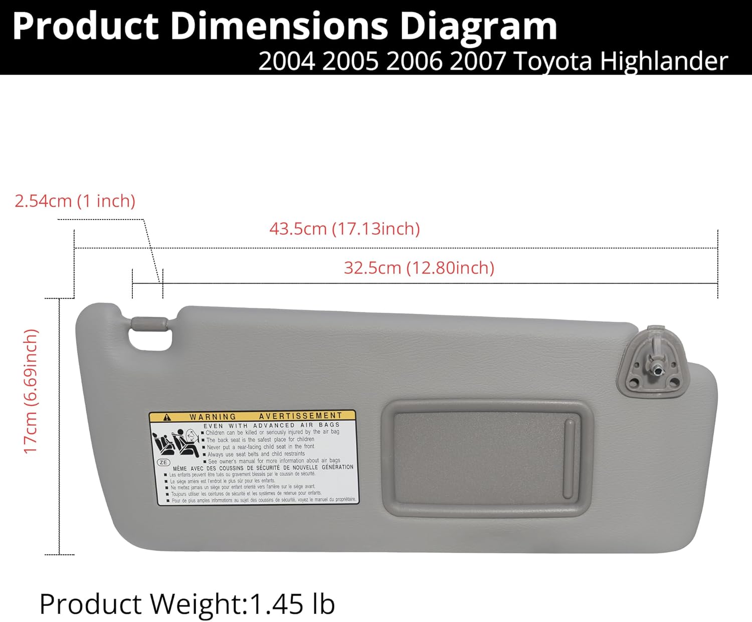| Included Components | 1 Driver Side Toyota Higlander Sun Visor Assembly, 1 Passenger Side Toyota Higlander Sun Visor Assembly |