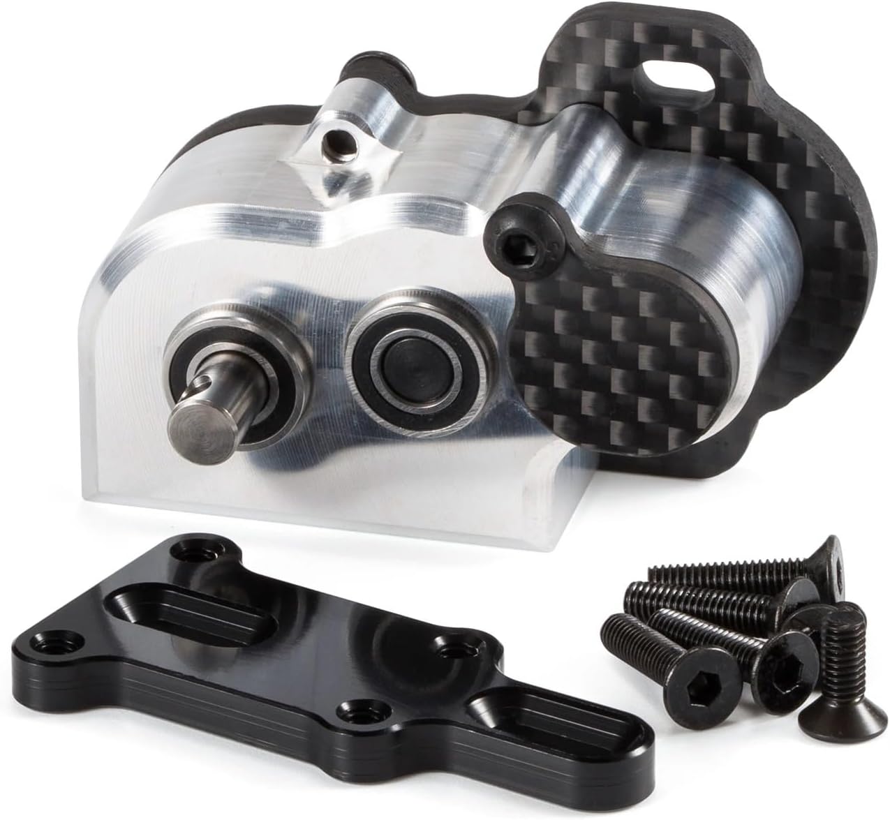 Feature: Tiny Transmission for portal axles. CNC machined aluminum case and carbon motor plate. Hardened chromoly gears. Grade 5 Titanium 5mm output shaft. Fully enclosed. Weight: 36.6g, Ultra-Small and Ultra-Light. Low noise and ultra smooth. Motor bolt holes 25mm on center. Skid plate mounting holes 27.5mm on center (M3 threaded holes). Comes with an aluminum slipper pad based on the Axial 3 gear type transmission mounting holes. 36T Spur Gear (48 pitch). Gear Ratio 3:1 X pinon/spur combo. Fits 48 Pitch pinions from 11T to 18T (Not Included) Gear Ratio: 11T pinion: 9.8 12T pinion: 9.0 13T pinion: 8.3 14T pinion: 7.7 15T pinion: 7.2 16T pinion: 6.75 17T pinion: 6.35 18T pinion: 6.0 Included: 1x Tiny Transmission 1x Slipper Pad 1x Hardware Set