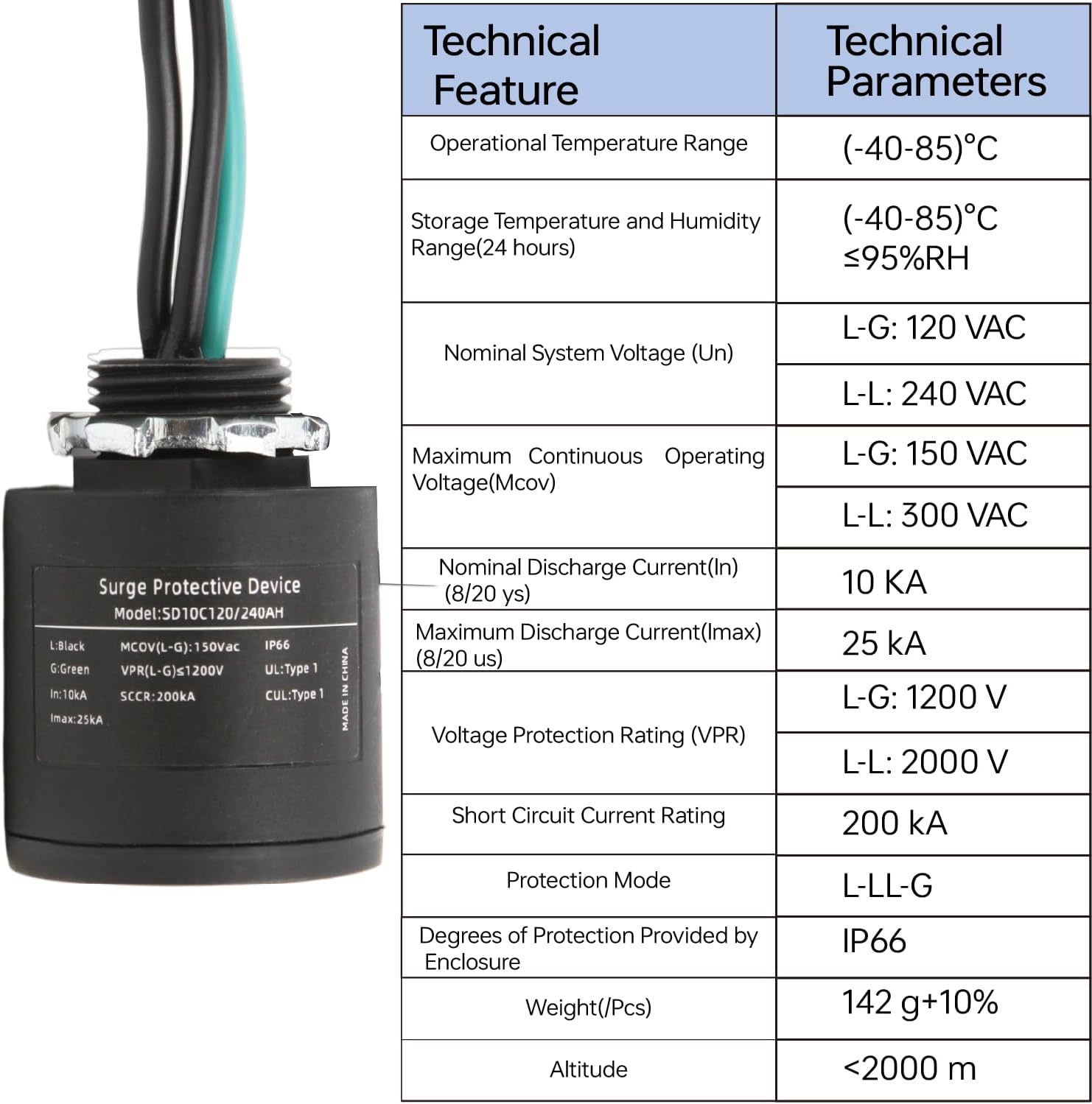 | Other Special Features of the Product | Light Indicator, Surge Protection, Weather Resistant |